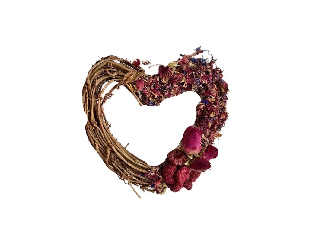 Bennyho sušenky - Velké proutěné srdce s malinami a růží - 1ks