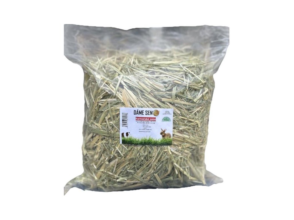 Prémiové seno z mladého ovsa je sklízeno v rané fázi zralosti, kdy obsahuje nejen kvalitní vlákninu, ale i výživné zelené klasy. Díky přirozenému obsahu vitamínů a minerálů (zejména vitamínů skupiny B, železa a hořčíku) je výborným doplňkem k běžné stravě králíků, morčat, činčil a dalších drobných savců. Podporuje trávení a pomáhá s obrušováním zubů.