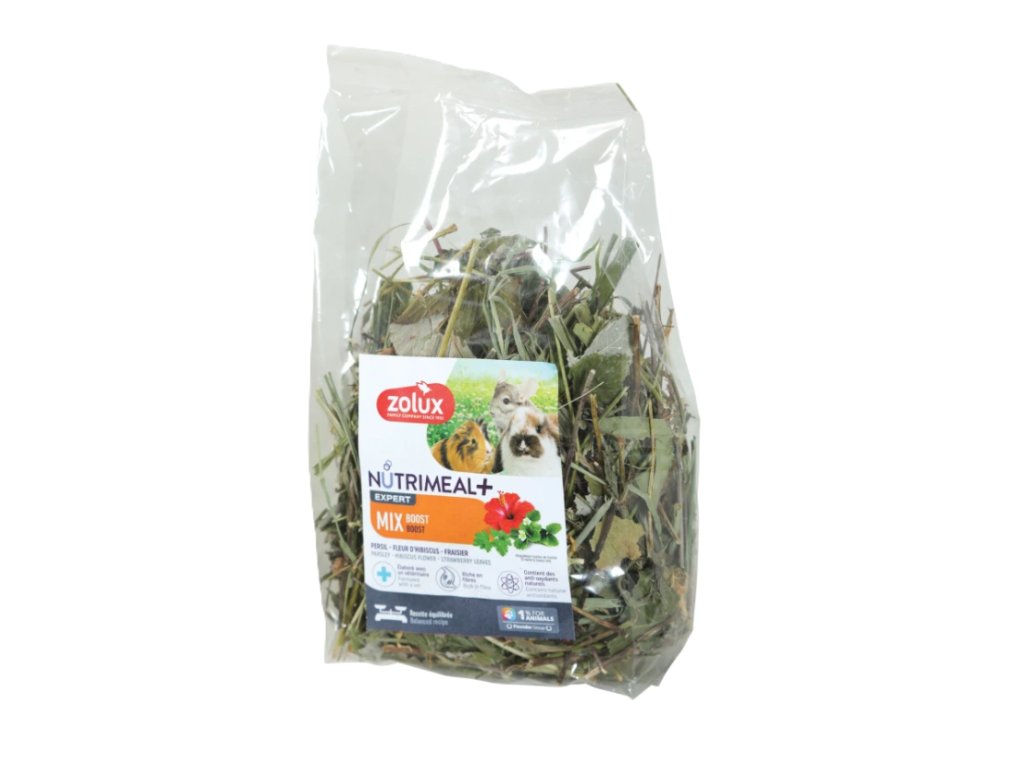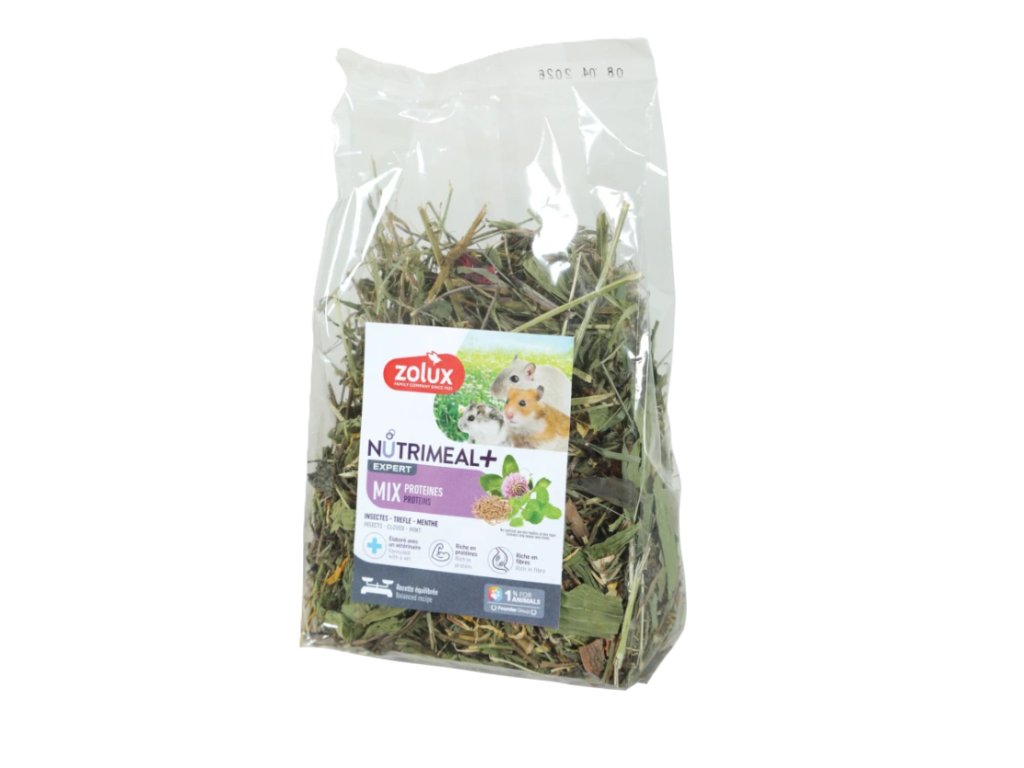 Vyvážená receptura přizpůsobená výživovým potřebám zakrslých králíků, morčat a činčil.