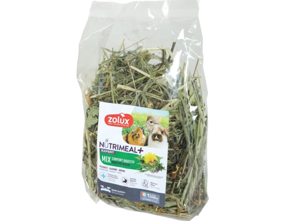 Složení: ovesná stébla 14%, výhonky máty, vojtěška 14%, kopřiva, jetel, listy pampelišky 8%, květ měsíčku, rostlina topinamburu