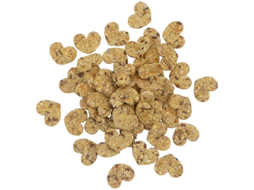 Složení: kukuřice, pšenice, mrkev, lněné semínko, arašídy, proso La Plata, larvy hermetie 5 %, manna proso, pruhovaná slunečnicová semena, rostlinný škrob, červená řepa